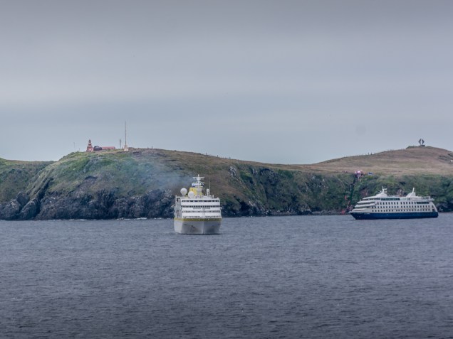 We arrive at Cape Horn at around 8am on February 1st. Cape Horn is actually an island so after viewing the actual southern most point with the famous Cape Horn lighthouse, we sailed around the island and then headed northeast for our next destination, Port Stanley in the Falkland Islands. As we sailed around Cape Horn, there were other smaller cruise ships sailing around the area. As we entered the Atlantic Ocean the winds and the seas picked up a bit so it was a bit rough for much of the day and overnight sail towards the Falklands.