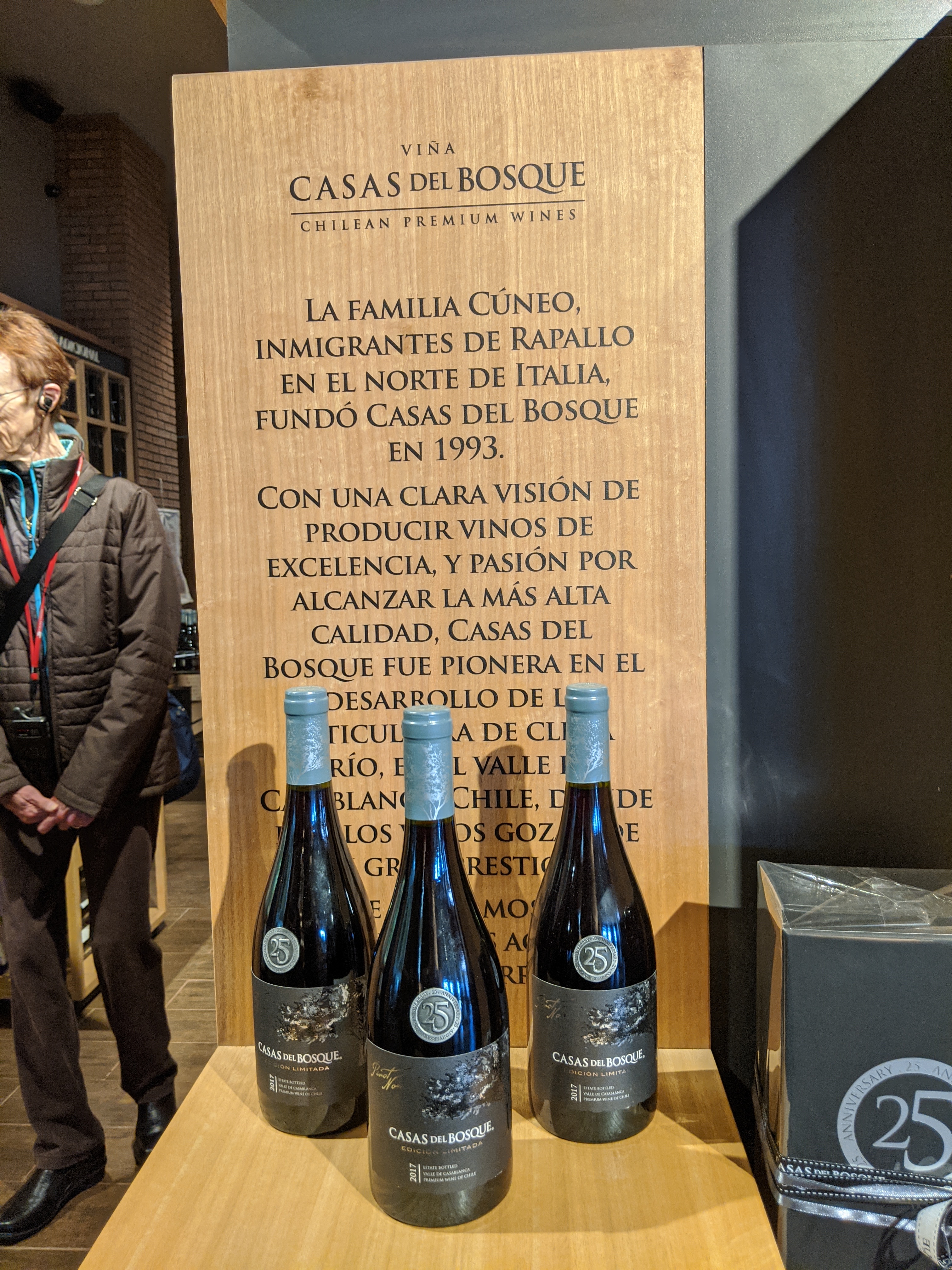 We tasted 3 wines; a white (Chardonnay) which was very good and 2 reds. One red, I believe was a Merlot and the second a Carménère. The Carménère was excellent and our guide explained that this grape was an old variety originally introduced into France’s Bordeaux region by the Romans in ancient times. Spanish missionaries brought the plants to Chile in the 16th Century where they have flourished since. The Carménère was all but wiped out in France by phylloxera plague in the mid-19th Century, but Chile’s climate and soil are resistant to phylloxera, so this dark red grape and wine is still produced. We enjoyed this variety so much, we bought a bottle to enjoy later.