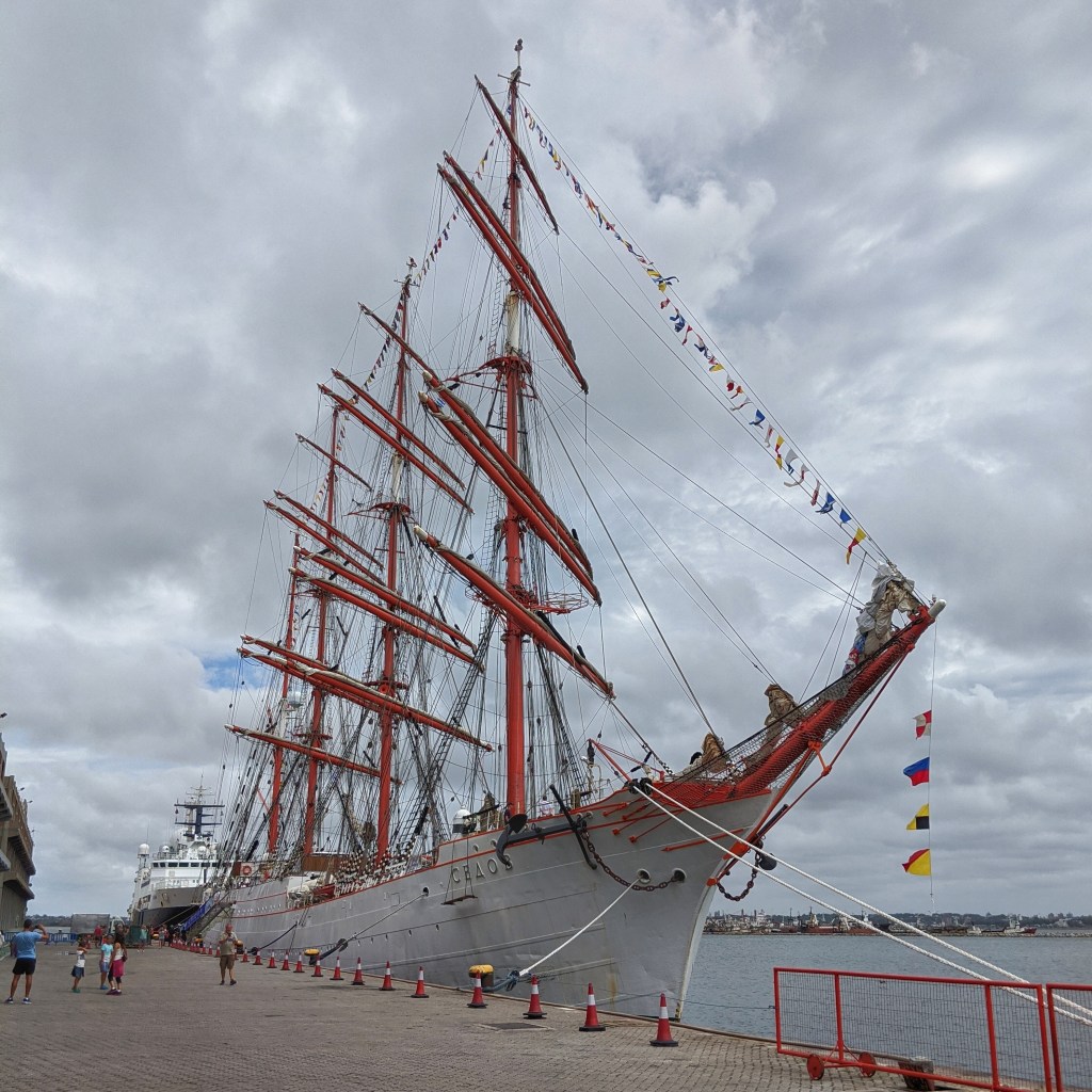 Alongside the dock near our ship was a beautiful tall ship that was visiting Montevideo. The Russian tall ship Sedov is a 4-masted barque operated by Murmansk University and is a training ship.