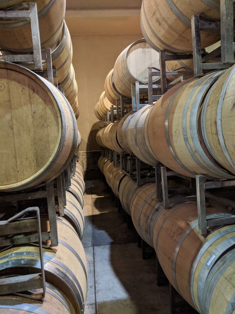At the top of the hill, old oak trees provide shade, framing postcard views of the vineyard below. A white pergola with wine barrel tables is set up for weddings and events, and rustic farm buildings tell the story of the property’s past. Best of all, a brand-new tasting room and outdoor deck are under construction, scheduled to open next season.