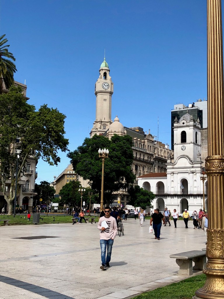 Tuesday morning was sunny and the forecast was for a warm, clear day. We walked from the hotel to the Plaza de Mayo, a little less than a mile. Along the way, we were taking in the splendid architecture of Buenos Aires. This city with its wide boulevards and neoclassical buildings reminds one of Paris. At Plaza de Mayo we took our obligatory pictures of the presidential residence, Casa Rosado.