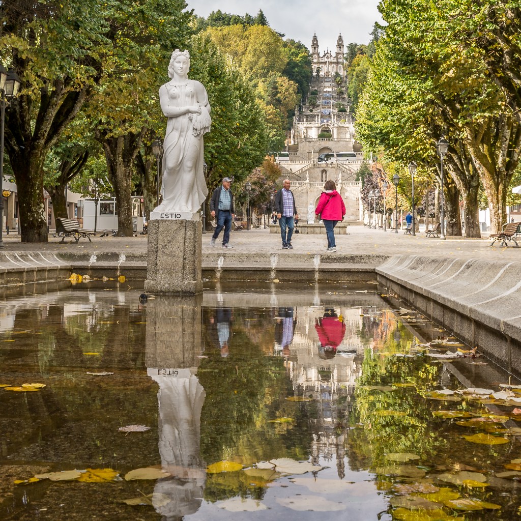 We spent a morning in the town of Lemego, starting at the Sanctuary of Our Lady of Remédios on a hill high above town. This is an important pilgrimage church with a staircase of 686 steps leading from the town below to the church. Landings on the stairway have statues and chapels and are adorned with beautiful blue tile mosaics. During the annual pilgrimage many penitents climb the steps on their knees. Needless to say, we didn’t walk the stairs.