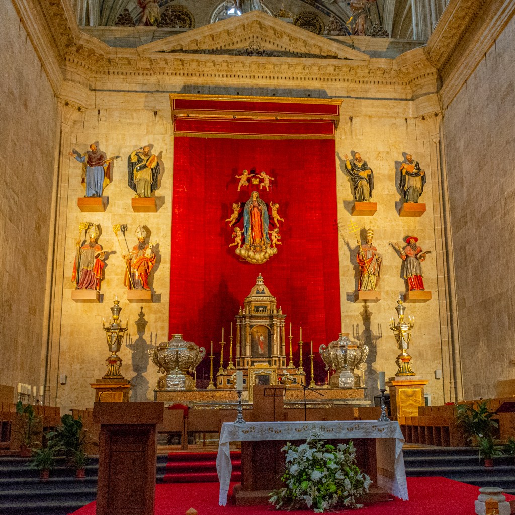 The Old Cathedral is Romanesque, dating from the 12th century, and is famous for its ornate Gallo Tower. Its breathtaking 15th-century altarpiece features no less than 53 panels depicting scenes from the lives of Jesus Christ and Mary, topped by a presentation of the Final Judgment.